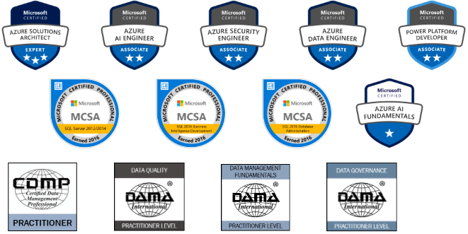 DAMA certified with specialisation in Data Quality and Data Governance.